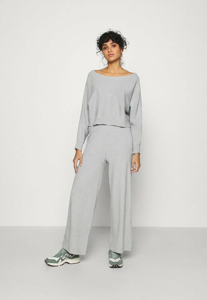 Even&Odd Damen SET BAT SHAPE LOUNGE – Strickpullover – Mottled Light Grey